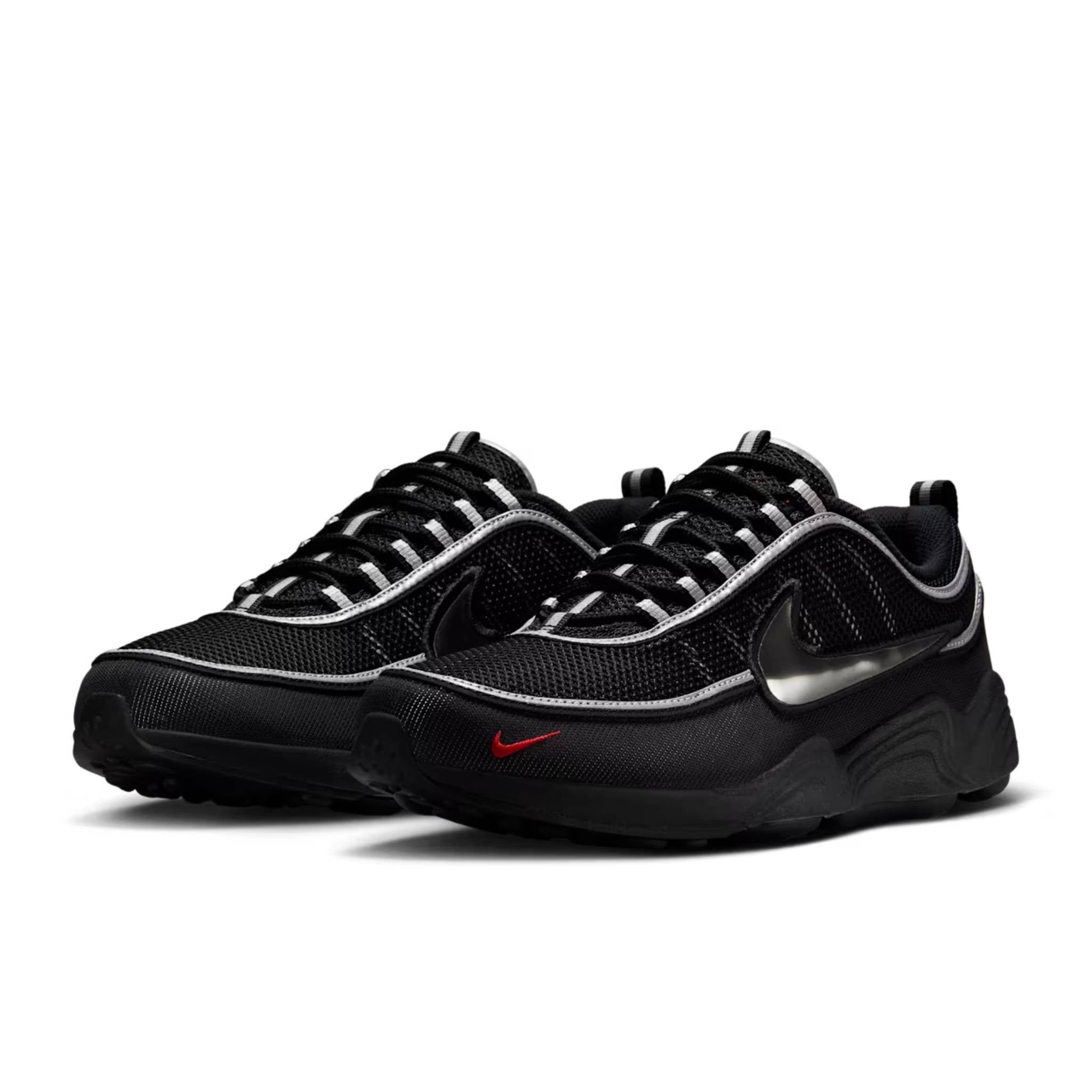 Esta versión de Tenis Hombre Nike Air Zoom Spiridon Negro Plata se mantiene fiel al modelo original con paneles de malla transpirable y acentos en Plateado Metálico y Rojo Deportivo, logrando un look dinámico y futurista inspirado en los años 90. Bajo el pie, la amortiguación Air Zoom de longitud completa ofrece una sensación reactiva y cómoda en cada paso, fusionando innovación y legado en una sola silueta.